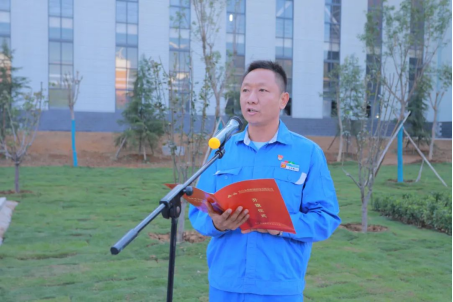 在升旗儀式上,許昌安彩董事長楊建新向在項目建設中給予支持幫助的各位領導、辛勤付出的各位同事及家屬表示衷心的感謝。他表示,許昌安彩的建設者們在公司領導的正確指引下,頂住壓力、爭分奪秒,終于實現滿產達效,跑出安彩項目建設新速度。截至目前,公司各項工序運轉正常,各項指標均達到并超過科研設計水平。這張來之不易的“成績單”是所有許昌安彩人拼出來、干出來的,是落實安彩高科“一核四極”發展戰略、傳承安彩“十大精神”的集中體現。我們將堅持黨建領航、文化鑄魂,以高質量黨建推動企業高質量發展,堅決貫徹安彩高科指示,推動一期項目穩定盈利,加快二期項目盡快落地,以優異成績為祖國慶生、為黨的二十大獻禮。